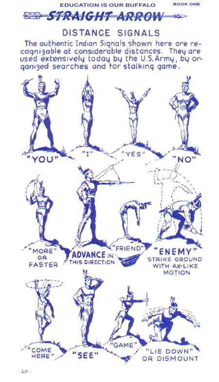 Different distance signals were used by the indigenous tribes to give a signal from distance. If someone is at distance these signals were used for communication. US army also adopted these signals.