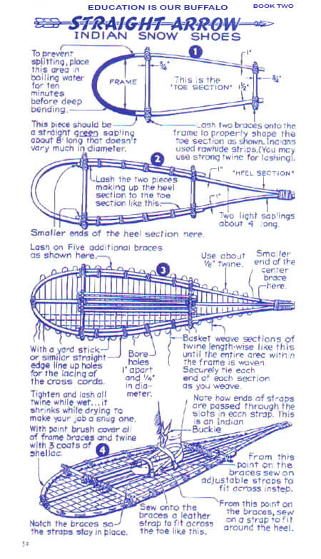 From the beginning, it was nearly unavoidable that the snowshoe would evolve into a must-have item for walking comfortably in the snow. They allowed the wearer to hunt in the cold without sliding or sinking — sometimes over vast distances. Snowshoes also assisted the wearer in exploring and discovering the local area, as well as just staying alive. Native American snowshoes were primarily made of ash, a strong wood. To make the wood malleable, it was warmed or wet, then bent into shape. Rawhide was used to stitch the frame, which was largely strips of denuded moose, deer, or caribou skin. The lacing was often elaborate.