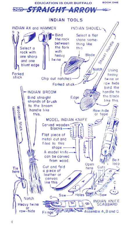 Let’s start with basic took making techniques which are necessary to live life in woods. Basic tools include an axe, hammer, Indian Shovel, Indian knife, broom, knife and scabbard. For an axe making you need a forked stick, a rock with blunt edge, and bind them together and here is your axe ready.