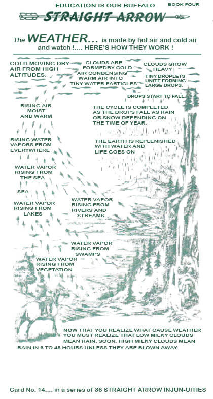 Predicting the weather by monitoring clouds and animal behavior is the most useful thing to learn from the smart Native American cultures. Bloated clouds with flat bottoms that expand in width indicate that a storm is approaching. Clear weather is indicated by high and wispy clouds. Animal behavior can also be used to predict weathere.g., When squirrels start accumulating more food than normal, it’s a sign that the winter will be long and cold. When a strong storm is approaching, horses and cattle become anxious.